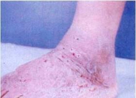 足菌肿病在中年人中比较常见,并且男多于女。容易发生于四肢暴露部位,尤以手、足部常见。病程呈慢性经过,一般带有外伤史。皮损开始为暗红色丘疹、结节、脓疱,然后逐渐融合成肿块和多发性脓肿,与皮肤粘连,表面暗红色。脓肿破溃后形成瘘管,瘘管引流液呈脓性及血性,皮下组织破坏时有脂状液流出。引流物中混有颗粒,颗粒根据病原菌不同可呈黄、白、黑等不同颜色,直径为0.3~4µm左右。时间长了会有部分老皮损瘢痕形成,新结节又不断出现,形成结节、肿块、瘘管及瘢痕同时布满受累肢体。脓肿会侵及包括肌肉、肌腱、筋膜、骨骼在内的邻近结构,同时会引起骨膜炎、骨髓炎和骨坏死,甚至会导致严重的畸形和残疾。