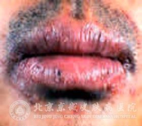 2、干燥脱屑性唇炎:此慢性唇炎以唇红部干燥脱屑为主要症状,有时可伴有纵裂沟,若裂沟较深,能引发出血,形成血痴。