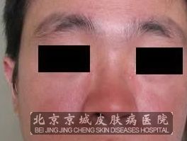 皮肌炎的皮肤损害多种多样,有的为 症状;有的具有一定特异性,对诊断有帮助;有的出现提示伴发内脏恶性肿瘤;有的与预后有关。皮损病变与肌肉累及程度常不平行,有时皮损可以较为广泛而仅有轻度肌炎,相反亦有存在严重肌肉病变而仅有轻度皮损,有时皮损反映了肌肉病变的程度。通常在面部特别是眼睑发出紫红色斑,逐渐弥漫地向前额、颧颊、耳前、颈和上胸部V字区等扩展,头皮和耳后部亦可累及。闭眼近睑缘处可见明显扩张的树枝状毛细血管,偶见弯曲较先进有针头大小瘀点的毛血管;以眼睑为中心出现眶周不等程度浮肿紫红色斑片具有一定特征性。