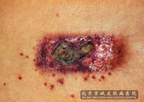 ⑵对溃疡性损害可用抗生素软膏如莫匹罗星等,亦可用10 鱼肝油软膏或行氦氖激光照射,对顽固性溃疡可考虑手术切除并行植皮术。