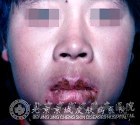 剥脱性唇炎在临床上划分的四种类型: ①光化性唇炎 其主要特征是下唇的病患部糜烂,唇部会发生轻重不一的肿胀,轻者具有淡黄色渗出液,痴皮颜色较浅;重者则有溃疡形成,出血而形成血痴。病情时轻时重,可迁延.数日或更长的时间。患者常感到局部灼热、疼痛、干燥,唇部活动受到影响。 ②干燥脱屑性唇炎 此类属于慢性唇炎,主要以唇红部位的干燥脱屑为主要症状,有时还会伴有纵裂沟,如果裂沟较深,可以出血,形成血痴。患者因为感觉唇部干燥、疼痛,因此常常习惯用舌头舔嘴唇加以湿润,然而这样会加重病情。 ③腺性唇炎 此类病症是由唇部黏液腺肥厚、肿大而引起的。患者常常具有局部肿胀、麻木的感觉。翻开肿大的唇部,可见唇内侧黏液腺导管口微红,有稀薄的或脓性黏液从导管口渗出,呈小水珠状。 ④肉芽肿性唇炎 此类症状多见于20~40岁的人,以上唇症状较为明显,其特征是唇部呈弥漫性肿胀,颜色正常,扪之较软。该病易反复发作,而且复发后肿胀较前一次加重,如此而成为持久性的肿大。